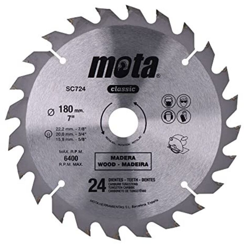 Seghetto circolare 180mm 7 1-4 24 dtes c lp18 sc724 denti in carburo di tungsteno. include boccole di riduzione per il mandrino.