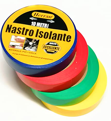 Herran Nastro Isolante Elettrico in PVC a 4 Pezzi (15mm x 10mt) in Multicolore.