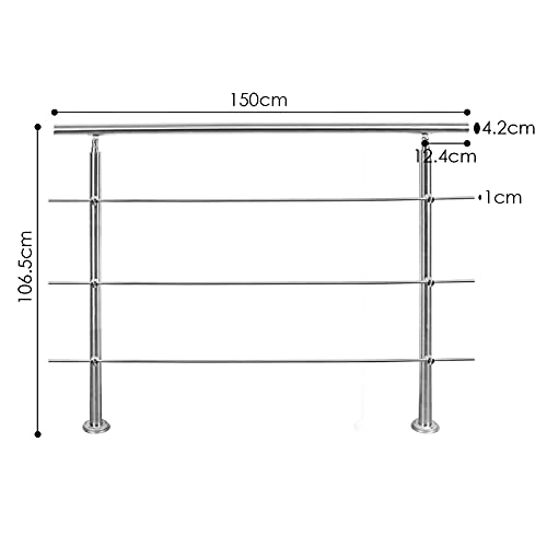Herrselsam Corrimano in acciaio inox per scale, Ringhiera 150cm 3 traverse, per scale ringhiera balcone, Interno esterno corrimano da parete parapetto
