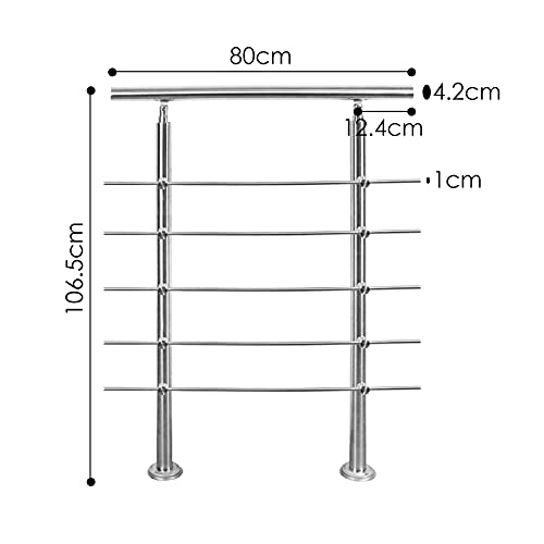 Herrselsam Corrimano in acciaio inox per scale, Ringhiera 80cm 5 traverse, per scale ringhiera balcone, Interno esterno corrimano da parete parapetto