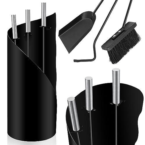 Herrselsam Set di 4 posate per camino, accessori per camino, con pratico contenitore per camino, per cucina, casa, casa, casa, casa, accessori per la pulizia del camino, colore nero