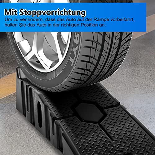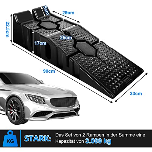 Herrselsam Set di 4 rampe di sollevamento per auto, in plastica, portata fino a 3 tonnellate, antiscivolo, con protezione anti-attraversamento per auto e veicoli