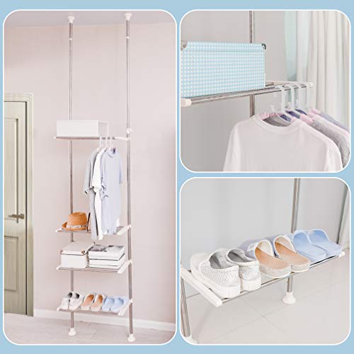 Sia l'altezza che la larghezza di questo scaffale da bagno sono retrattili e possono essere regolate in base alle dimensioni richieste, l'altezza di 2 ripiani può anche essere regolata. Si adatta dietro e sopra WC, lavatrice o asciugatrice. Trasforma rapidamente il tuo bagno con lo scaffale in piedi.