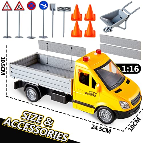 【Progettato per i Bambini】- L'auto di ingegneria è dotata di segnali stradali, coni stradali, carrelli da costruzione, ecc. Il materiale è sicuro e resistente, adatto per far giocare i bambini.
