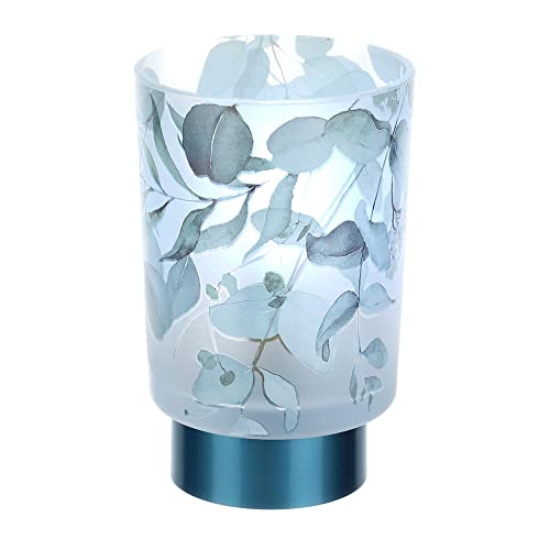 Hervit Lampada da Tavolo in Vetro con Decoro Floreale Botanic Senza Fili - Lampada da Scrivania - Punto luce comodino abat-jour di Design Funzionamento a Batterie - Ø10x15cm (Blu)