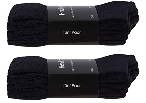 Herzberg, calzini da uomo, colore: nero, cotone, business, filo rosso interno, 2 cm di lunghezza extra, senza cuciture, Oeko Tex 100, senza gomma nero 39-42 (10 Coppie)