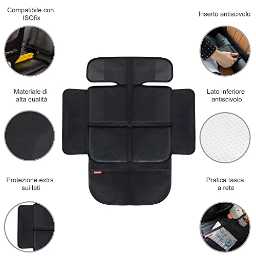 ✅LA PROTEZIONE PERFETTA PER I SEDILI DELLA TUA AUTO - La base per seggiolino protegge il tuo seggiolino auto da graffi e ammaccature causate dal seggiolino per bambini. La seduta è imbottita con 10 mm di spessore e su entrambi i lati offre inoltre circa 15 cm di protezione extra contro lo sporco da scarpe per bambini, cibi e bevande.