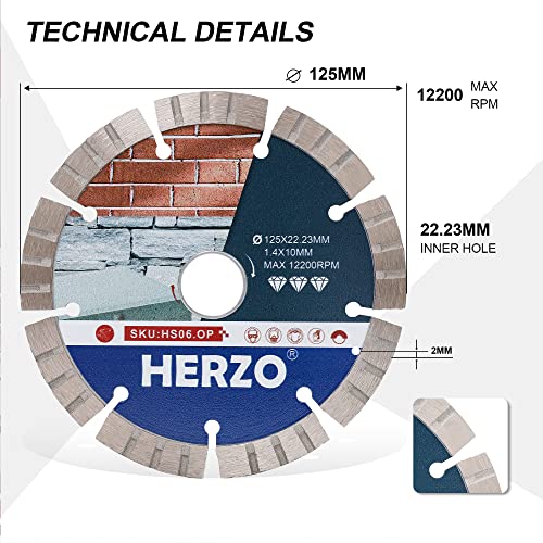 HERZO Disco Diamantato 125mm, 3 Pezzi Dischi Diamantati Segmento, Taglio a Secco e Umido per Cemento Granito, Pietra, Mattoni, Marmo, etc.