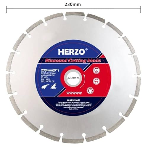HERZO Disco da taglio diamantato 230 x 22,23 mm cemento, disco da taglio universaleper il taglio di materiali edili, cemento, pietra naturale, pietra, mattoni, muratura.