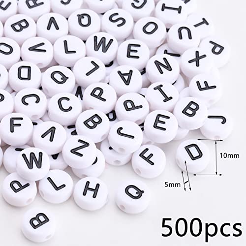HERZWILD 500pz Acrilico Lettera Perline Bianche Rotondo Acrilico Perle con nero Lettere 10mm Piatte Tondo Bead per Braccialetti Collane Creazione di Gioielli Fai da Te