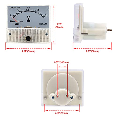 Heschen 85C1-2V - Tester per voltmetro a pannello rettangolare da 0 a 2 V, classe 2,5, colore: Bianco