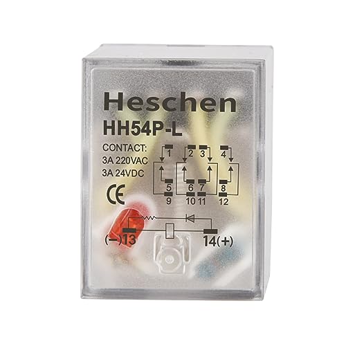 Heschen - Relè di alimentazione multiuso HH54P-L 220VAC Bobina 3A 220VAC/24VDC 4PDT 14 pin terminali, indicatore LED