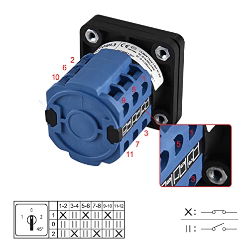 Heschen Commutatore rotativo universale a camme, SZW26-20/D303.3, 660V 20A, ON-OFF-ON 3 Posizioni, 3 Fase, 12 Terminali, CE