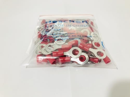 Heschen, connettore a crimpare per terminali ad anello, in vinile, isolato, RV1.25-6, dimensioni 1/4" per 0,5-1,5 mm² (22-16 AWG) rosso, confezione da 100