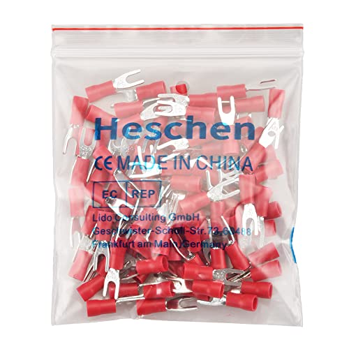 Heschen - Connettori a forcella per collegare fili isolati, per crimpaggio terminali SV1.25-3, dimensione bullone #4, per cavi di 0,5-1,5 mm² (22-16 AWG), colore rosso, 100 pezzi