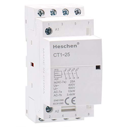 Heschen Contattore CA domestico, CT1-25, Ie 25A 4 poli Quattro normalmente aperti, AC 24V Tensione bobina, 35 mm Montaggio su guida DIN