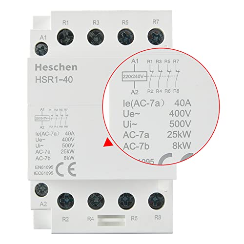 Heschen Contattore CA domestico, HSR1-40, Ie 40A, 4 poli, quattro normalmente chiusi, tensione bobina AC 220V/240V, montaggio su guida DIN 35mm