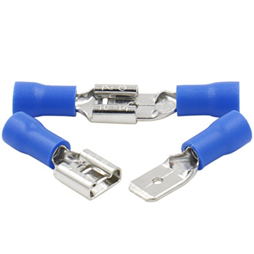 Heschen Disconnetti rapidi maschio/femmina isolati in vinile, FDD+MDD2-250, terminale per cavi da 6,3 x 0,8 mm, per 1,5-2,5 mm² (16-14 AWG), blu, confezione da 100
