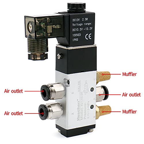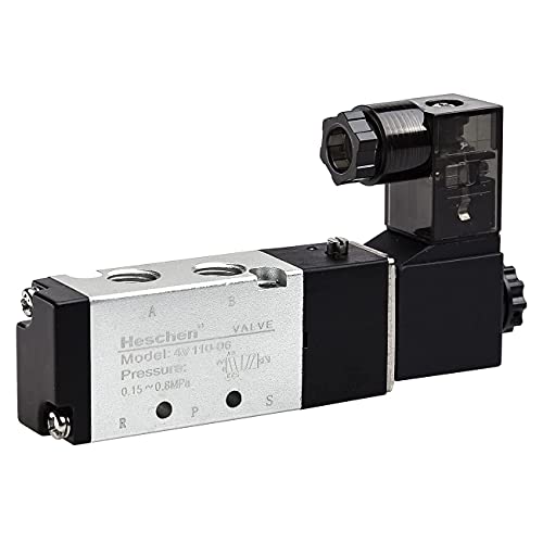 Heschen Elettrovalvola pneumatica 4V110-06 24VDC PT1/8 5 vie 2 posizioni singola bobina pilotata CE elettrico con raccordi e silenziatore