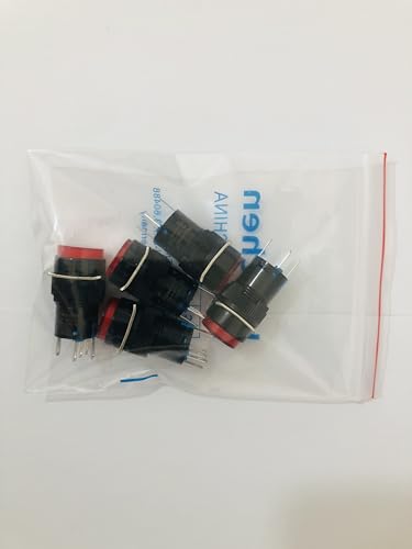 Heschen 16 mm interruttore a pulsante momentaneo rotondo 1NO 1NC 220V LED lampada 5 Pack (rosso)