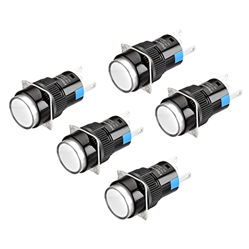 Heschen - Interruttore a pulsante rotondo, 16 mm, 1 NC, 24 V, confezione da 5 pezzi, colore: Bianco