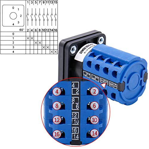 Heschen - Interruttore universale di commutazione SZW26-20/0-4.4 660 V 20 A, 5 Posizioni, 4 Fasi, 16 Terminali CE