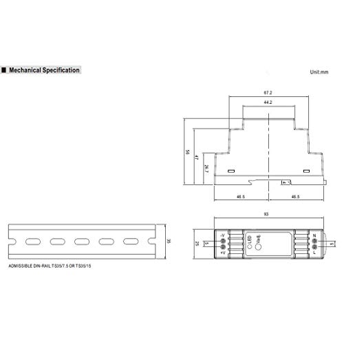 Heschen Meanwell - Alimentatore di rete per guida DIN, DR-15-24, 15 W, 24 V, 0,63 A, guida DIN UL CE