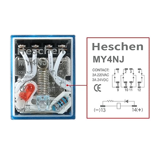 Heschen MY4NJ - Relè di potenza per uso gererale, 220 VAC, bobina 3 A, 220 VCA/24 VDC, indicatore LED a 14 pin terminali