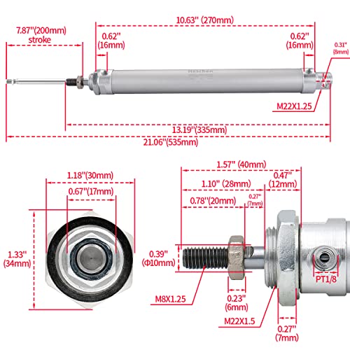 Heschen Pneumatico Sottile Cilindro dell' Aria, MAL 25-200, PT1/8'' Porta, Alesaggio 25mm, Corsa 200mm, Doppio Effetto