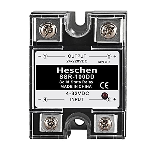 Heschen Relè a stato solido CC/CC monofase, SSR-100DD, ingresso 4-32VCC, uscita 24-220VCC, 100A 50-60Hz