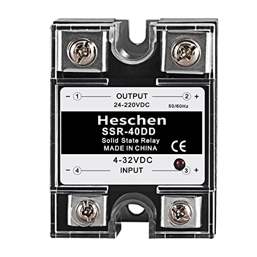 Heschen Relè a stato solido DC/DC monofase, SSR-40DD, ingresso 4-32VDC, uscita 24-220VDC, 40A 50-60Hz, con dissipatore di calore
