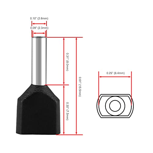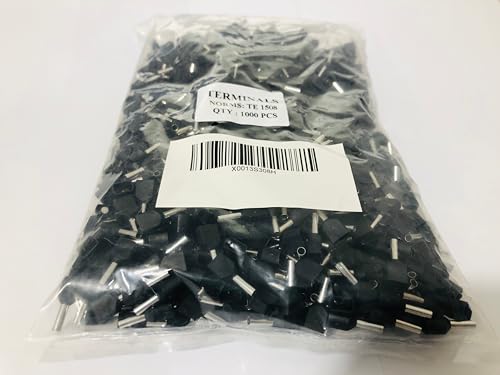 Heschen TE1508 AWG Terminali doppi a tubetto isolato, 16 x 2/1,25 mm² x 2, lunghezza 8 mm, colore nero, confezione da 1000