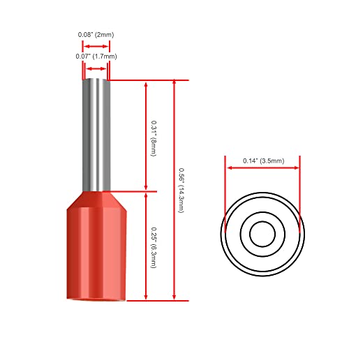 Heschen Terminale per cavo, E1508, AWG16/1,5 mm², connettore a crimpare in rame, isolato in vinile, rosso, confezione da 1000