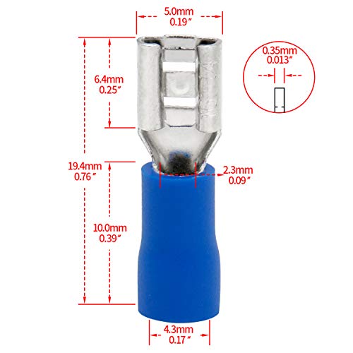 Heschen - Terminali per cavi isolati in vinile, 4,8 x 0,5 mm, per 1,5-2,5 mm² (16-14 AWG) blu, confezione da 100