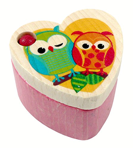 Design colorato e adatto ai bambini a forma di cuore con un allegro motivo di gufo sul coperchio rimovibile