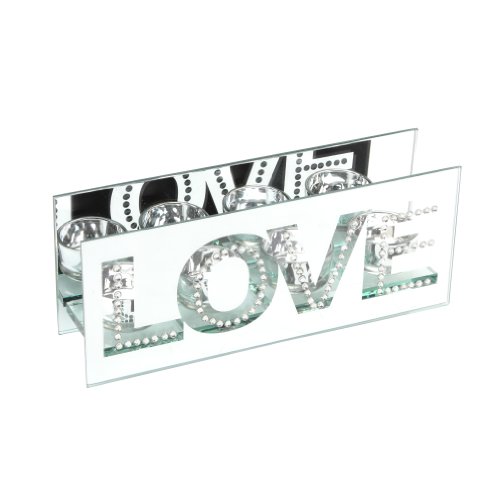Hestia Glass Mirror Finish Four T-Lite Holder, LOVE