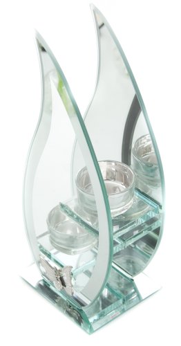 Hestia Glass Mirror Flame Double Tea Light Holder With Metal, Gift Box