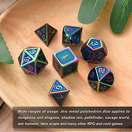 Hestya 7 Pieces Metal Dices Set with Storage Bag And Enamel for Dungeons And Dragons (Arcobaleno Bordo Ceruleo 2)