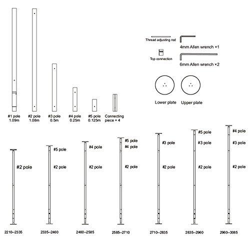 Altezza regolabile che consente di adattarsi a soffitti di diverse altezze, che vanno da 2,21 m a 3,00 m (9,8"), con estensioni opzionali a scelta