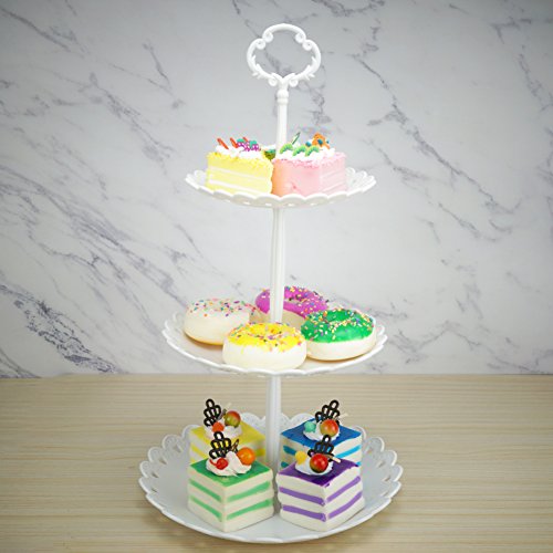 Hetoco, alzatina tripla per dessert, supporto in plastica per dolci, per feste e cerimonie di matrimonio, set da 2 bianco