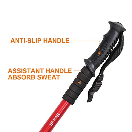 Hewolf Bastoncini da Trekking Rossi Bastoncini telescopici 51~110cm Bastoncini da Trekking Regolabili in Alluminio Leggero Pieghevole, Portatile, con Impugnatura in Schiuma per l'alpinismo