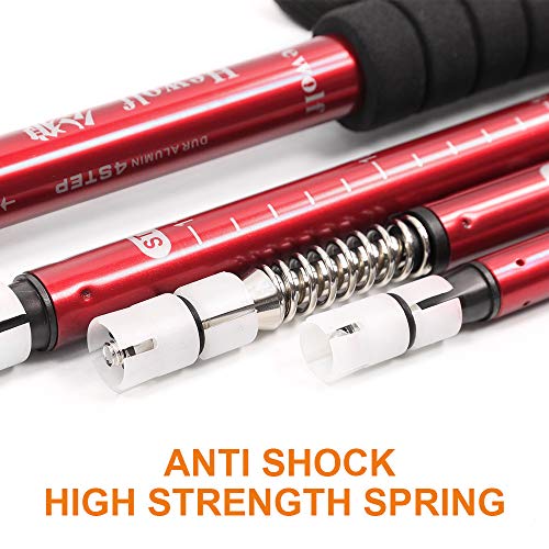 Anti-shock e durevoli: i bastoncini da trekking Hewolf sono realizzati in alluminio aeronautico di alta qualità e molla anti-shock, che possono ridurre fortemente i danni causati dalla forza d'impatto. I bastoncini da trekking pesano 350 g, che potrebbero aiutarti a mantenere l'equilibrio.