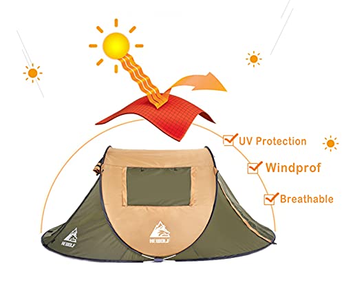 HEWOLF Tende da Campeggio Istantanee 2-4 Persone Grande Tenda Pop-up Automatica Tenda Familiare Impermeabile Tenda da Spiaggia Cabana Portatile per Spiaggia Campeggio Pesca Tenda