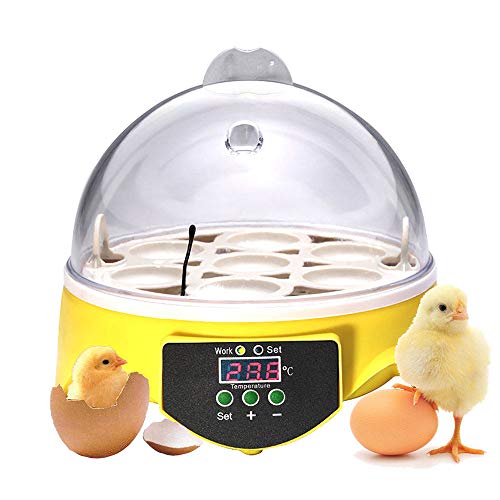 HEWXWX Incubatrice Piccola, Incubatrice per Uova 7 Uova di Incubazione Incubatrice Digitale per Uova Controllo Automatico della Temperatura Tornitura Manuale - Disattiva Finestra Trasparente