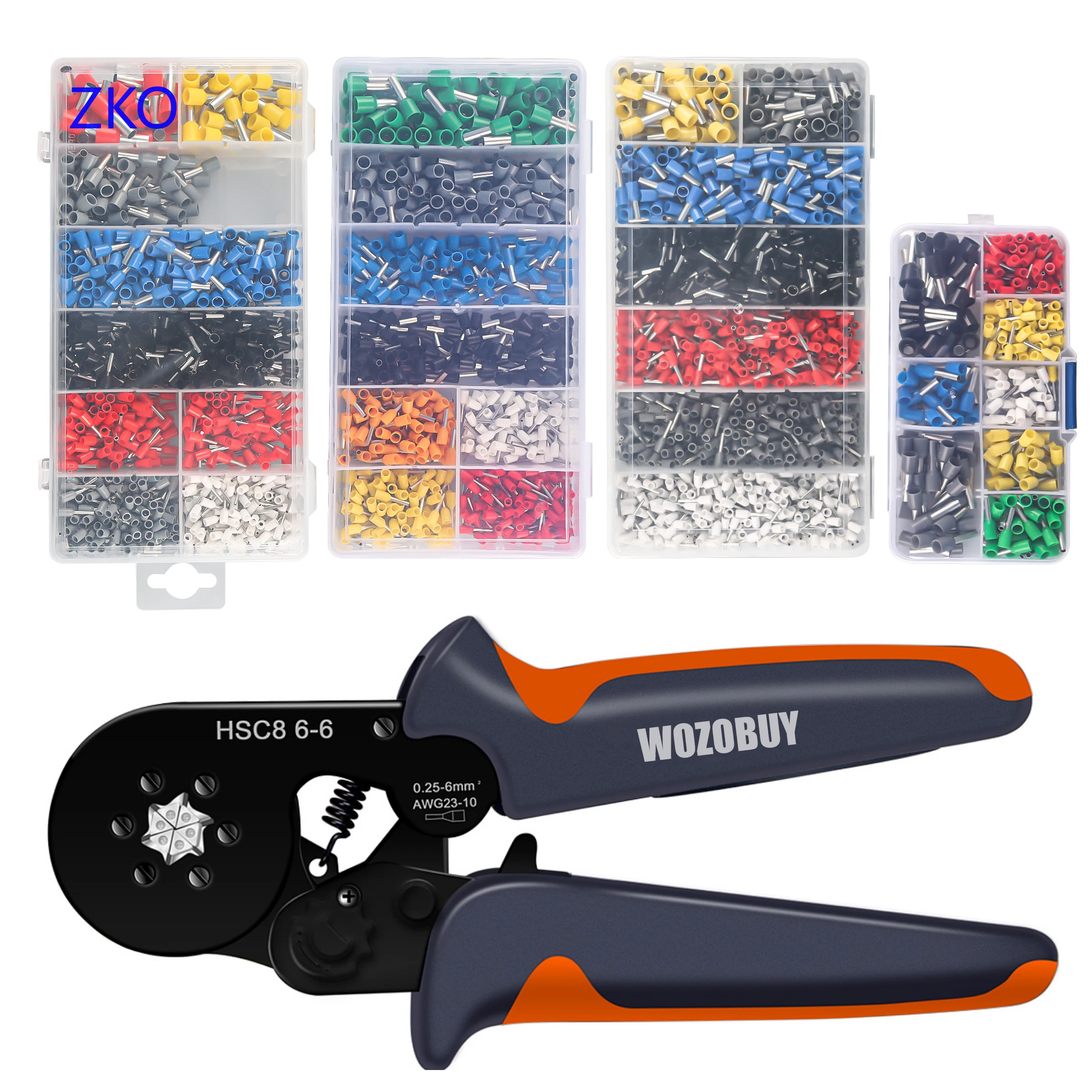 Hexagonal Sawtooth Self-Adjustable Ratchet,Ferrule Crimping Tool Kit, Crimper Kit with 400/800/1200/1800/1900pcs Wire Terminals