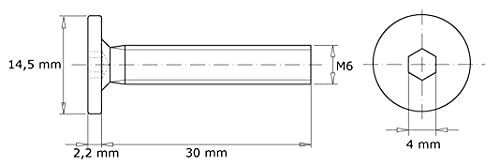 HEXATON Viti per Mobili a Testa Piata con Cava Esagonale | Completamente filettato | Acciaio Zincato | M6 x 30 mm | 100 Pezzi