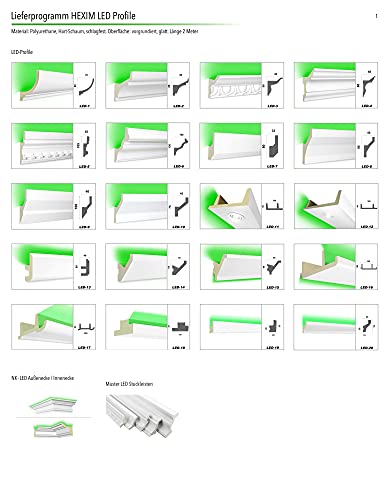 Hexim LED profili di stucco in PU - illuminazione indiretta con profili di soffitto moderno, opaco, luce e resistente agli urti - (LED-4 80x48mm) luce calette, profilo, profilo di stucco