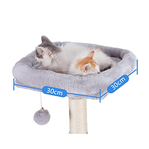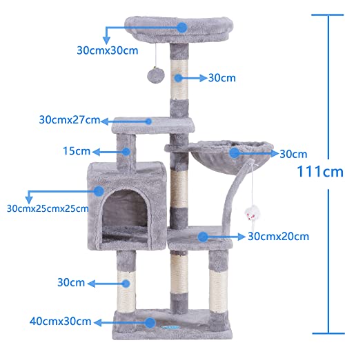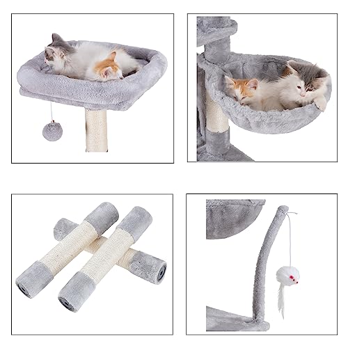 Hey-brother Albero per gatti con giocattolo, torre per gatti da interno, casetta per gatti con posatoio imbottito in peluche, amaca accogliente e tiragraffi in sisal, grigio, EMPJ004SW-N