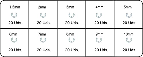 HeyNana 200 pezzi anelli di sicurezza a forma di E rondelle in acciaio 304 assortite rondelle elastiche assortite aperte 1,5/2/3/4/5/6/7/8/9/10 mm in scatola