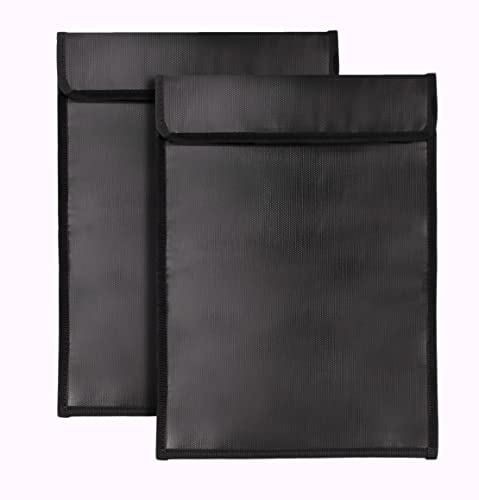 HEYQK Borsa per Documenti Ignifuga Impermeabile Nera da 2 pezzi, 28 * 38 cm, Borsa Ignifuga in silicone rivestito resistente al fuoco (Stile Pieghevole),Chiusura in Cerniera